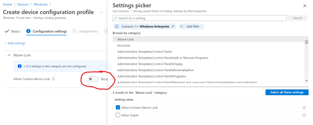 Let`s have a look at how this new Settings Catalog profile can be configured.