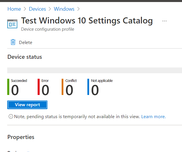 You can also view if the settings have applied properly to the devices using the nice reporting feature of the Settings Catalog.