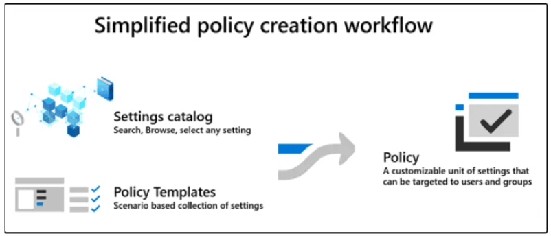When you create the policy, you start from scratch. You add only the settings you want to control and manage. For example, you can use the settings catalog to create a BitLocker policy with all BitLocker settings, and all in one place in Intune.